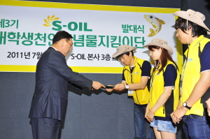 [프라임경제] 에쓰오일(S-OIL)은 전문성 있는 환경 봉사단 육성을 위해 4일 서울 마포구 공덕동 본사 사옥에서 ‘대학생 천연기념물 지킴이단’ 발대식을 가졌다고 밝혔다.