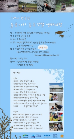 이번 갯벌 생태여행은 증도 지역주민으로 구성된 주민여행사(길벗)과 연계해 진행될 예정이어서, 증도 주민들이 함께 준비하는 프로그램으로도 큰 의미가 있는 행사이다.
