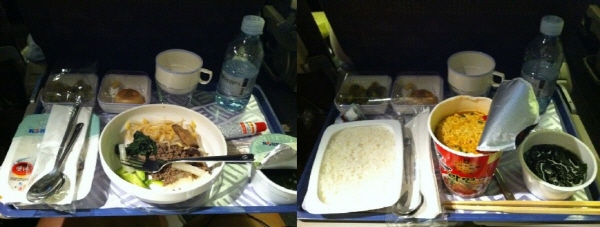 승객이 촬영한 문제의 '상한 나물'. 승객의 항의에 따라 대한항공은 급히 컵라면을 준비했다고 한다. 사진은 포털사이트 블로그 등에 올라있다.