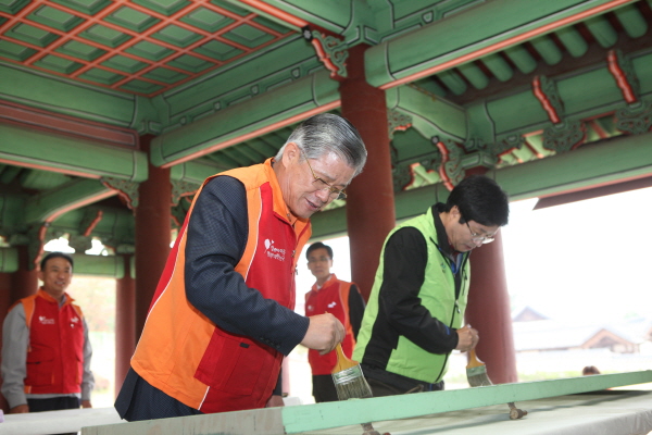 특히, 수원의 화성행궁에서 펼친 문화재지킴이 봉사활동에는 최 회장과 염태영 수원시장이 창호지교체 봉사활동에 참여하며 화성행궁을 소중히 보존한다는 행사의 의미를 더했다. 3년째 이어오고 있는 화성행궁 문화재지킴이 봉사활동은 수원의 향토기업으로서의 지역사회 공헌과 아울러 일회성 봉사활동가 아닌 지속적인 사회공헌활동을 전개하고 있다는 평을 받고 있다.