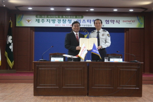 이스타 항공은 17일 오전 10시 제주지방경찰청 회의실에서 제주도 근무 전·의경 모범 포상 휴가자 및 외박자 무료항공권 제공 및 항공운임 할인 혜택 확대 협약식을 가졌다. 이날 협약식에는 이스타항공 이상직 회장과 제주경찰청 신용선 청장을 비롯해 양 기관의 임직원 및 간부들이 참석했다.