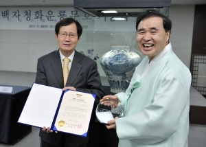 [프라임경제] 금호석유화학은 지난달 30일, 조선 후기 왕실 대표 도자 중 하나인 백자청화운룡문호(白磁靑畵雲龍文壺)를 문화재청 국립고궁박물관에 기증했다고 1일 밝혔다.