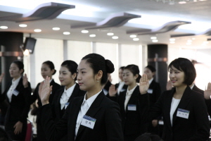 | 21명의 캐빈승무원 입사식을 진행한 에어부산은 올 한 해동안 132명의 직원을 채용하는 기록을 달성했다. | ||