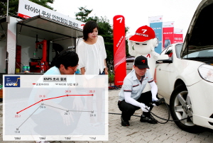 최근 국내 타이어 산업 평균 KNPS 지수가 하락세를 보이고 있음에도 금호타이어의 KNPS 지수는 첫 1위를 기록한 2008년 이후 △2009년 31.9점 △2010년 34.9점 등 성장세를 이어가고 있다. 특히 올해에는 적극추천응답비율에서 지난해보다 4점 가량이 높은 54.2점을 얻어 그 동안의 고객 중심 제품 개발 노력을 다시 한 번 증명했다.