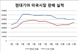 지난해 현대차의 미국 판매량은 64만5691대로, 전년대비 20%의 증가율을 기록했으며 기아차 역시 전년 대비 36%의 성장세로 48만5492대를 판매한 것으로 집계됐다. 양사의 판매량은 113만1183대로, 현대차가 미국에 진출한 지난 1986년 이후 25년 만에 연간 100만대 판매량을 달성했다.