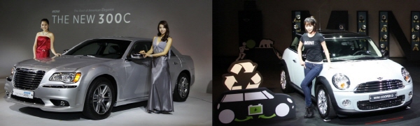 | 지난해 10만대 판매를 돌파한 수입차 브랜드들은 새해 시작한지 불과 3주만에 디젤 모델 2 차종을 출시하는 적극적인 공세를 보이고 있다.(왼쪽 크라이슬러 더 뉴 300C, 오른쪽 미니 디젤) | ||