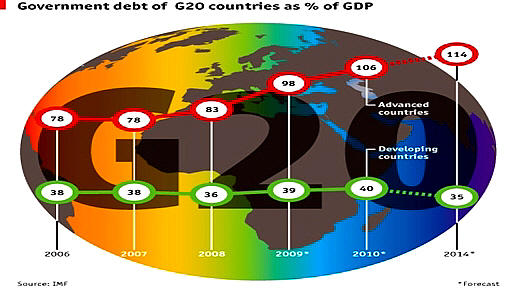 | G20과 개발도상국의 부채 추이. 자료는 IMF. | ||