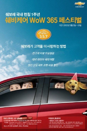 | 한국GM은 쉐보레 브랜드 출시 1주년을 맞아 ’쉐비 케어 와우 365 페스티벌’을 실시한다. | ||