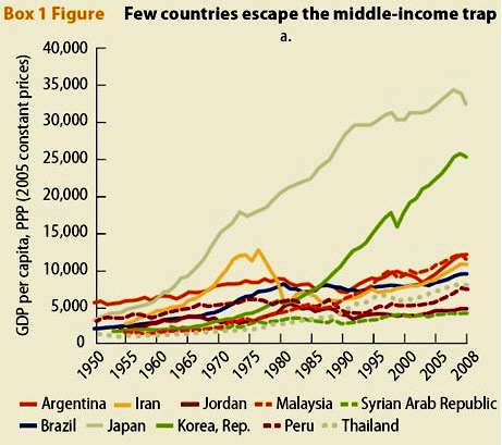 중진국 함정에 빠진 나라와 이 함정을 피한 나라.