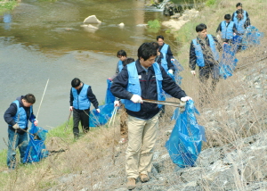 쌍용차는 ‘세계 물의 날’을 맞아 평택시 통복천 일대에서 ‘1사 1하천 가꾸기 운동’을 실시했다.