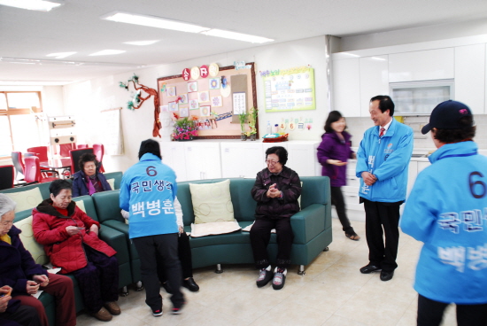 백 후보는 또 일산서구의 곳곳을 걸어 보고 관찰하면서, 특히 노인들이 횡단보도 파란불 신호가 짧아 고생하는 것을 발견하고 구름다리 공약을 제시하는 등 지역밀착형 공약을 내세우고 있다.