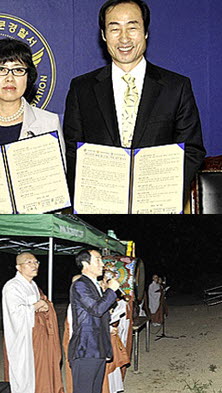 | 학교폭력예방 관련 행사에 참석한 사진(상)과 부처님 오신 날에 구민들을 만나는 모습(하). 사진들은 각 서대문구 릴리스 사진들임. | ||