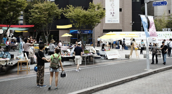 명랑시장에서는 순수 예술과 공예, 디자인 분야의 창작품을 전시·판매하는 한편 인디밴드들의 프리스타일 공연 등도 진행된다.
