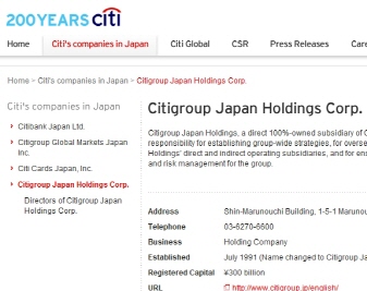 | 씨티그룹은 일본 현지에 닛코씨티홀딩스라는 중간지주를 두고 그 아래 상당한 계열사들을 두는 방식으로 적극적으로 문을 두드렸으나 현재 일부 업체를 매각하고 카드 등 일부 영역만 현지영업을 하고 있다. 사진은 현재의 씨티일본홀딩스와 현지 영업을 하고 있는 금융업체들의 목록 소개. | ||