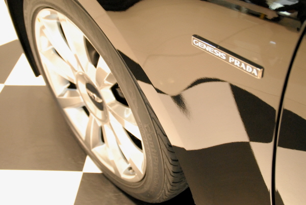 | 현대차는 고객들의 외관 차별화 확대 요구를 반영해 리어범퍼 왼쪽 하단부에 'GENESIS PRADA' 로고를 새롭게 부착했다. | ||
