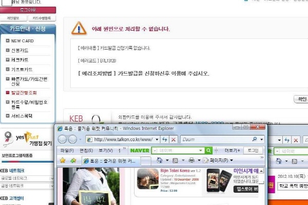 '신청이 되지도 않은 카드를 정성껏 신청 심사 중이니 기다리라는 외환은행'.