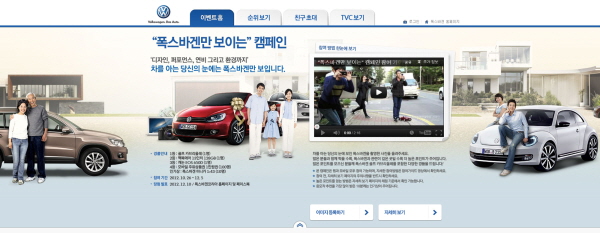 뿐만 아니라 최근까지 진행된 '폭스바겐만 보이는' 캠페인은 전 국민을 대상으로 일상생활 속에서 접하는 폭스바겐을 사진으로 찍어 캠페인 홈페이지에 올리는 형태로 진행됐다.