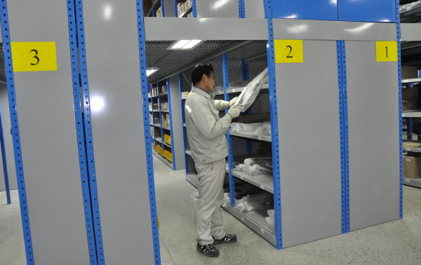 | 서부사업소 부품창고는 8000여개 아이템, 2만5000여개의 부품을 보유하고 있으며 그 외 하루에도 수천 개의 무빙아이템도 오간다. = 전훈식 기자 | ||
