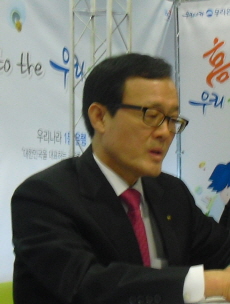 | 이순우 우리은행장이 상담 코너에서 우리은행 입사 지원과 관련한 학생들의 여러 질문에 답하고 있다. 이 행장은 직접 미소를 짓는 시범을 보이는 등 학생들에게 친근하게 대하는 모습을 보였다. = 임혜현 기자 | ||