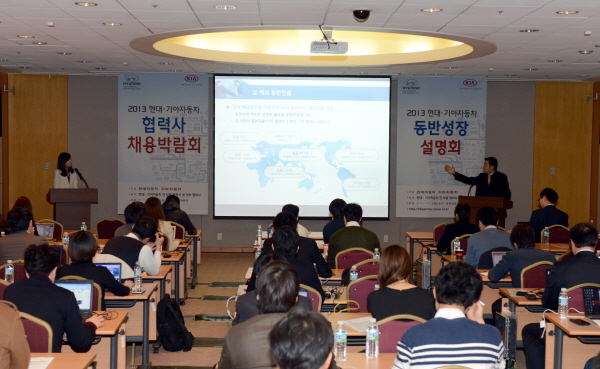 [프라임경제] 현대·기아자동차는 14일 '2013 협력사 채용박람회' 개막식에 앞서 지난해 동반성장 주요 성과 및 올해 확대 운영될 계획을 소개하는 '협력사 동반성장 설명회'를 가졌다.
