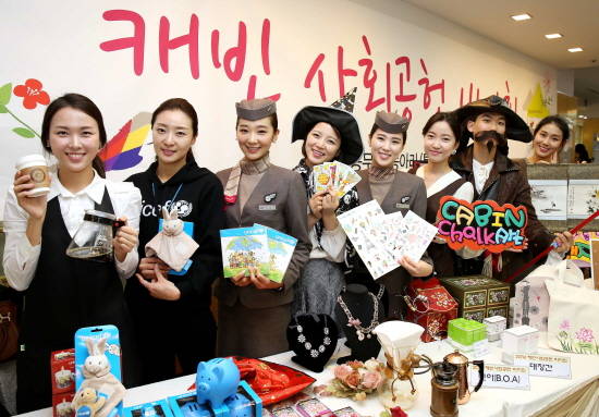 서울 강서구 오쇠동 아시아나타운에서 열린 '2014 캐빈 사회공헌 바자회'에서 아시아나항공의 특화팀 캐빈승무원들이 바자회 물품들을 선보이고 있다. ⓒ 아시아나항공
