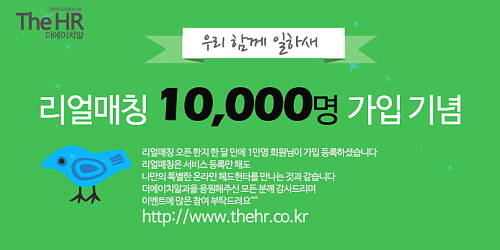 더에이치알은 '리얼매칭' 서비스 1만명 가입 등록을 기념하며 오는 31일까지 '리얼매칭 1만명 등록기념 이벤트 – 우리 함께 일하새'를 진행한다. ⓒ 더에이치알