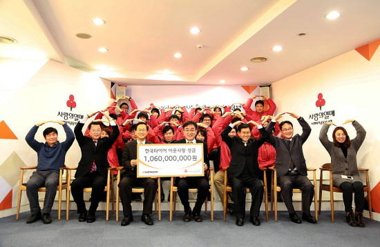 [프라임경제] 한국타이어(161390)는 연말연시를 맞아 '희망 2015 나눔 캠페인'을 주관하는 사회복지공동모금회에 소외계층 지원을 위한 이웃사랑 성금 10억6000만원을 전달했다고 23일 밝혔다.