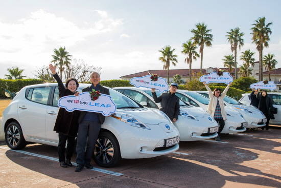 글로벌 전기차 선도기업인 닛산이 제주도에서 100% 전기자동차 리프의 첫 고객 인도식을 진행했다. ⓒ 한국닛산