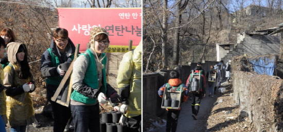연탄 지게를 나르며 소외이웃들의 생활 환경을 직접 접한 이들은 향후 다른 봉사활동을 통해 나눔을 지속하겠다는 뜻을 함께 했다.
