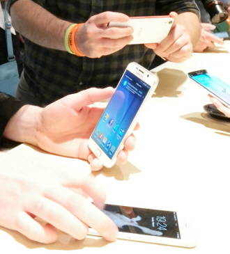 스페인 현지에서 갤럭시S6를 구동해 보고 있는 소비자들. ⓒ 삼성전자