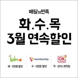 배달의민족, 3월 한 달간 '화수목 연속 할인' 이벤트