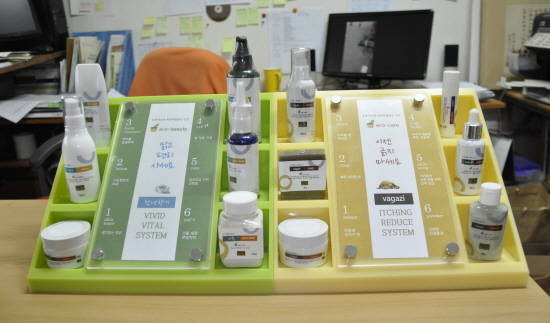 야심차게 준비한 바가지 화장품은 피부친화력이 좋은 강화약쑥과 느릅나무 등 토종약초와 천연성분을 사용했으며, 가려움증 완화 및 여드름 등에도 효과를 볼 수 있길 바라는 마음에서 만든 에코뷰티 제품이다. 증상에 따라 단계에 맞춰 사용하는 제품군으로 구성됐다.
