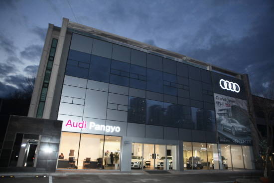 기존 경기도 분당구 수내동에 위치했던 아우디 분당 전시장에서 판교 IT 밸리 부근 분당구 대왕판교로에 새롭게 확장 이전한 아우디 판교 전시장은 연면적 835㎡에 지상 3층 규모다.