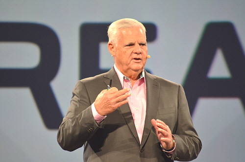 조 투치 EMC 회장이 'EMC 월드 2015'에서 기조연설을 진행하고 있다. ⓒ EMC