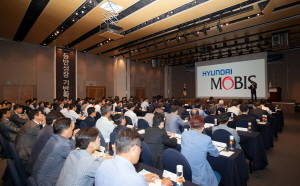 현대모비스가 제주도 해비치에서 개최한 국내 우수대리점 초청 컨퍼런스에서 대리점 대표자들을 대상으로 고객 만족도 향상을 위한 비전을 공유하고 있다. Ⓒ 현대모비스