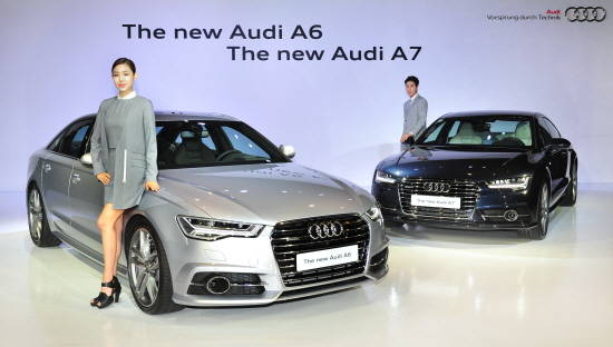 '뉴 아우디 A6'와 '뉴 아우디 A7'은 부분변경 통해 전 차종의 엔진성능이 향상됐으며, 새로운 디자인 요소가 적용된 것이 특징이다. ⓒ 아우디 코리아