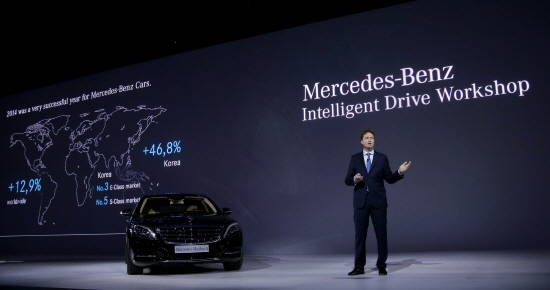 메르세데스-벤츠 코리아가 브랜드 플래그십 모델 S-클래스로 혁신적인 '인텔리전트 드라이브' 기술을 소개하는 메르세데스-벤츠 인텔리전트 드라이브 워크숍을 개최했다. 사진은 다임러 AG 이사회 멤버 및 메르세데스-벤츠 카 그룹 마케팅 & 세일즈 총괄인 올라 칼레니우스. Ⓒ 메르세데스-벤츠 코리아