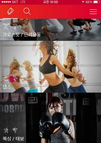바쁜 직장인들의 니즈를 충족시키기 위해 모바일 앱으로 단 몇 번의 클릭만으로도 내 주변 운동매장을 검색, 원하는 시간에 예약이 가능하게 했다. 이 앱은 구글 플레이스토어와 애플 앱스토어에서 내려받을 수 있다.