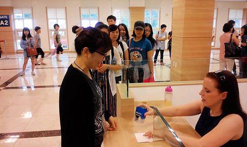 영어마을 입소교육 중 입국심사 시뮬레이션이 이뤄지고 있다. ⓒ 영진사이버전문대학
