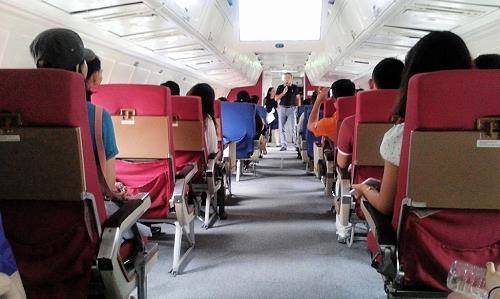 영어마을 입소교육 중 항공기 탑승 시뮬레이션 모습. ⓒ 영진사이버전문대학