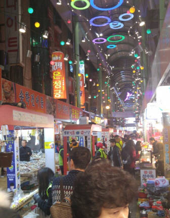 그렇지만 깡통시장에 등장한 야시장은 기존에 여기 터를 잡고 있던 점포에 없는 새 메뉴들을 집중 개발하는 전략이 주효해, 이 같은 우측 통행을 택하면서도 사람이 그대로 흘러가 버리는 대신 한바퀴 돌아 다시 오는 효과를 거두게 되었습니다.