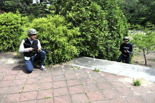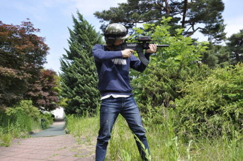페인트볼이나 BB탄 총기를 쏠 때처럼 보안경을 끼지 않아 불편함이 덜했다. 철모를 쓰고 실총과 유사한 무게의 총만 들고 뛰는 사이 절로 군대 시절로 돌아온 것 같은 기분이 들었을 무렵, 배에 두른 통증반응장치에서 한의원 전침치료 같은 찌릿한 통증이 와 깜짝 놀라 몸이 움츠러들었다. '킬(kill)' 된 것이다.