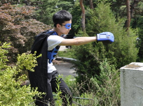 "실제로 페인트볼이나 BB탄을 쏘는 것처럼 위험하지 않기 때문에 보안경 같은 보호장비를 갖추지 않아도 되고요. 참여자가 아닌 일반 시민들도 많은 공간에서도 즉시 진행할 수도 있습니다. 다만 총 모양을 보고 놀라는 사람이 있다면, 우주전쟁 영화 같은 데서 나오는 레이저건을 손에 끼우고 할 수도 있지요."