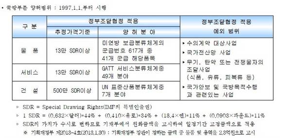 농산물 군납은 WTO 조달협정 등 일반적 시장경제원리나 글로벌 경제질서에서도 배제되는 특수한 영역이라는 당국의 해석과 헌법재판소 의견이 있다. 사진은 2014년도 방위사업청 편람. ⓒ 방위사업청