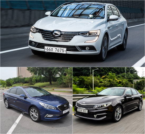 (위에서부터 시계방향으로)르노삼성 SM6, 기아차 K5, 현대차 쏘나타. ⓒ 르노삼성자동차·기아자동차·프라임경제