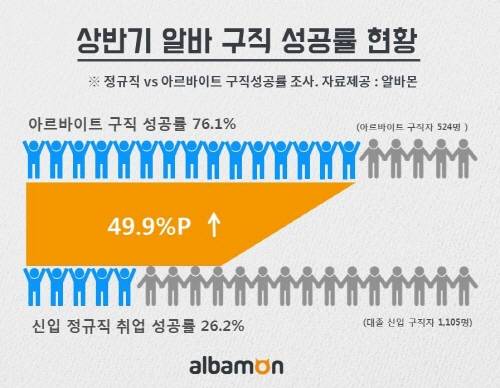 올 상반기 알바구직 성공률은 76.1%인 것으로 조사됐다. ⓒ 알바몬