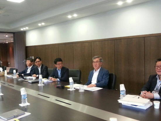 유창근 내정자가 지난 주말에 현대상선을 방문해 주요 임직원들과 현안을 직접 챙기며 점검하고 있는 모습. ⓒ 현대상선
