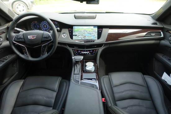 이와 함께 대담하면서도 섬세한 CT6의 실내는 품격과 자부심을 오감으로 전하기 위해 감촉이 뛰어난 천연가죽과 고급원목을 비롯해 탄소섬유 등의 특수소재가 실내 전반에 적용됐다. 센터페시아는 대부분의 버튼들이 모두 터치방식으로 구현됐고, 군더더기 없는 깔끔한 구성이다.