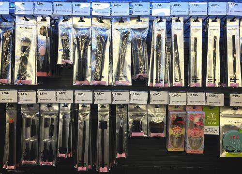 '셀프미용족'의 증가로 브러시와 퍼프 등 다양한 뷰티소품들의 수요가 높아지고 있다. 사진은 올리브영 매장 내 브러시 진열장. = 백유진 기자