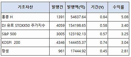 미래에셋대우와 NH투자증권 등 주요증권사 23곳에서 올해 상환한 기초자산별 ELS 수익률은 -13.13%였다. 비교적 수익률이 좋았던 지수형 역시 3.52%로 같은 기간 코스피 수익률인 5.18%를 밑돌았다.
